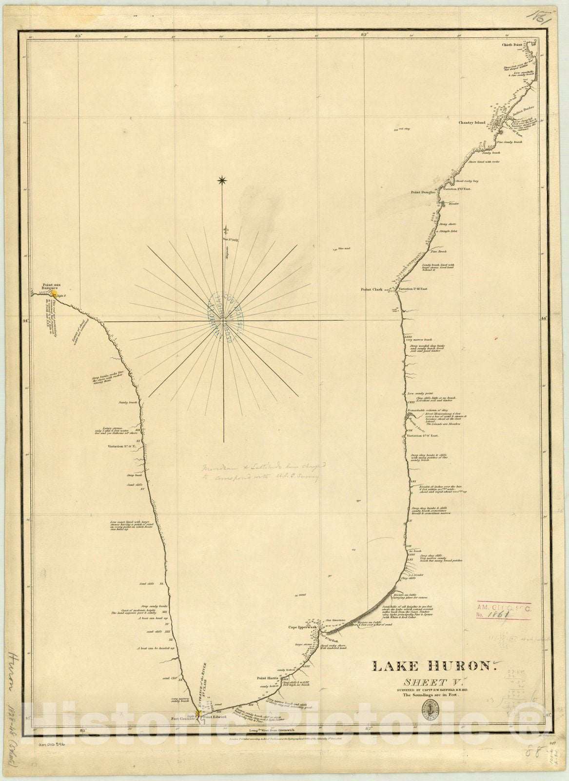 Map : Lake Huron 1828-1848 5, Lake Huron , Antique Vintage Reproduction