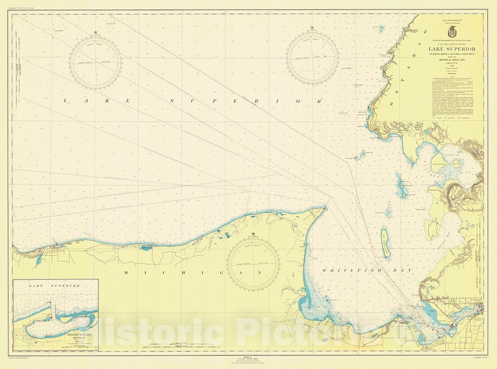 • .Historic Nautical Map - Lake Superior Coast St Marys River To Au Sable Point Mich And To Montreal Shoal Ont, 1946 NOAA Chart - Vintage Wall Art