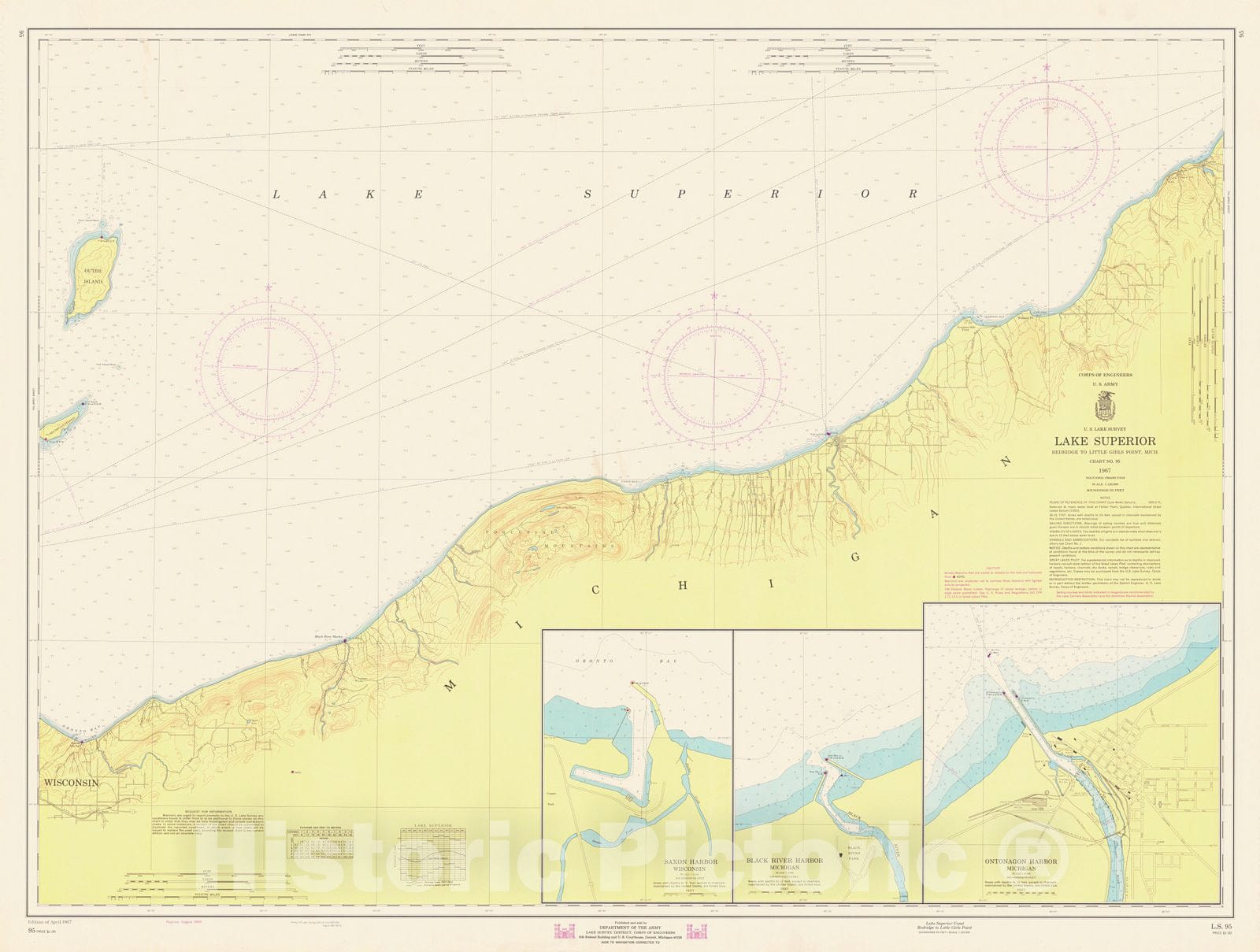 • .Historic Nautical Map - Lake Superior Coast Redridge To Little Girls Point, 1967 NOAA Chart - Vintage Wall Art