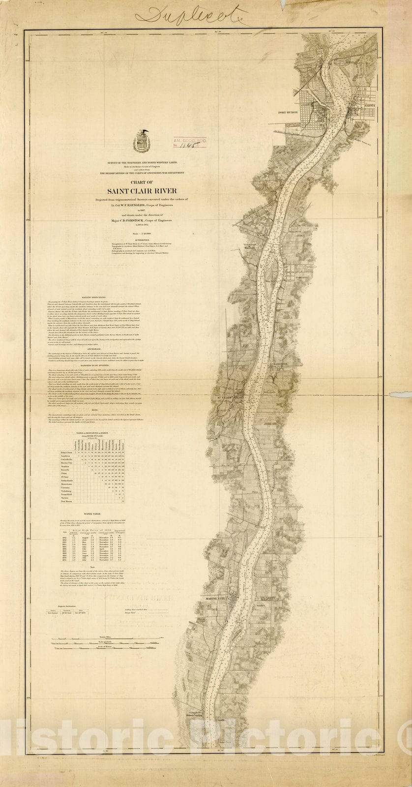 Map : Lake Survey Charts, Chart of Saint Clair River, Antique Vintage Reproduction