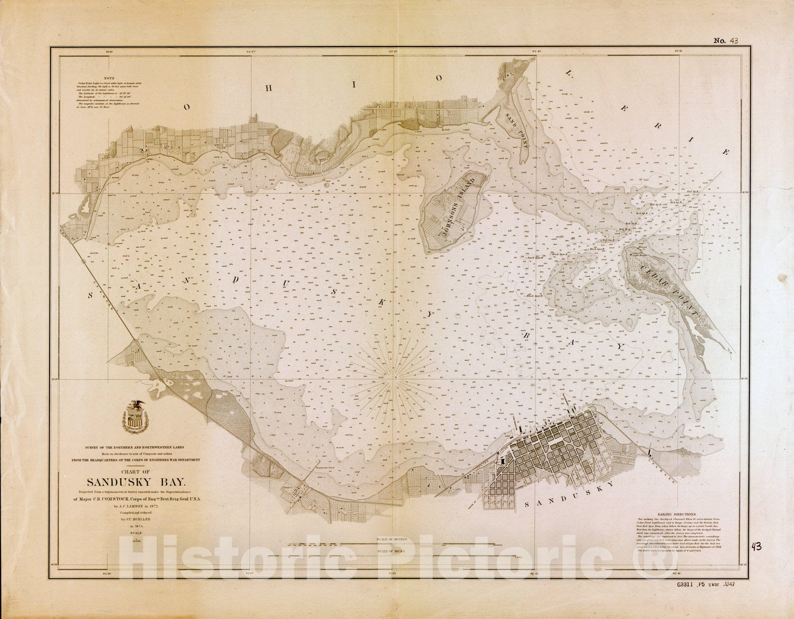 Map : Lake Survey Charts, Chart of Sandusky Bay, Antique Vintage Reproduction