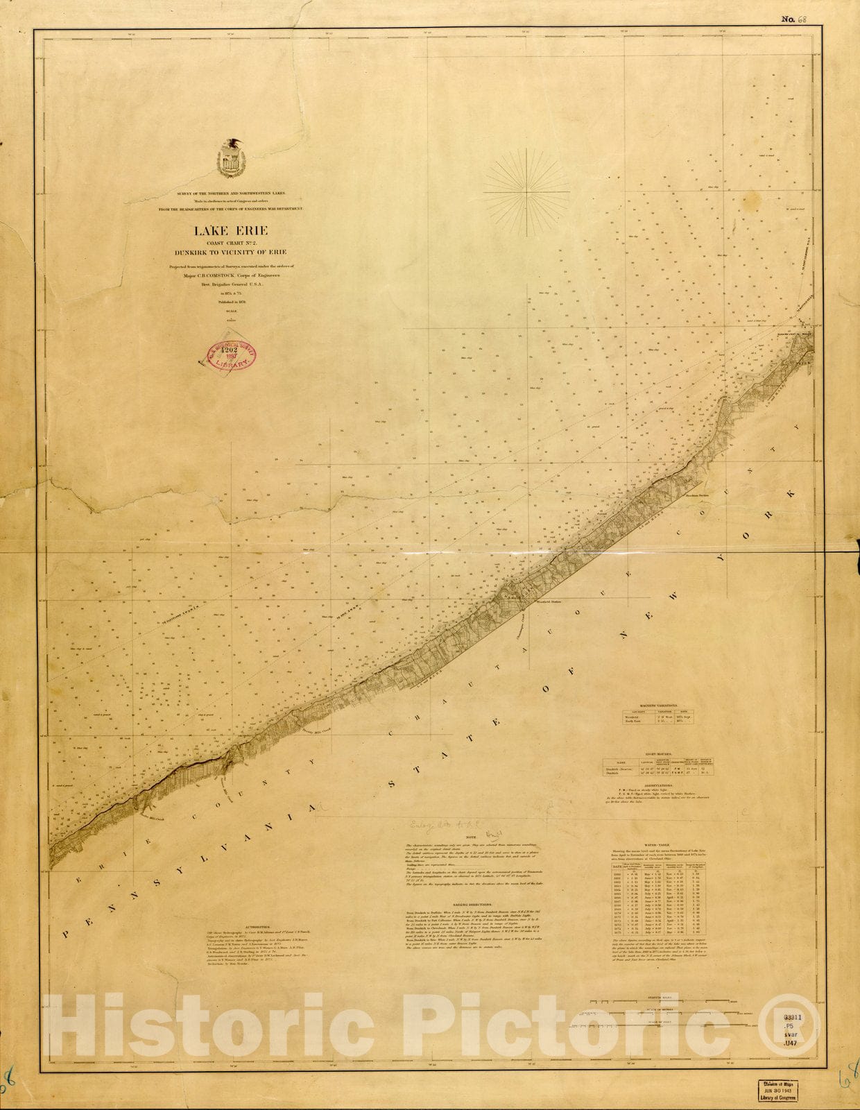 Map : Lake Survey Charts, Lake Erie coast chart no. 2 Dunkirk to vicinity of Erie, Antique Vintage Reproduction