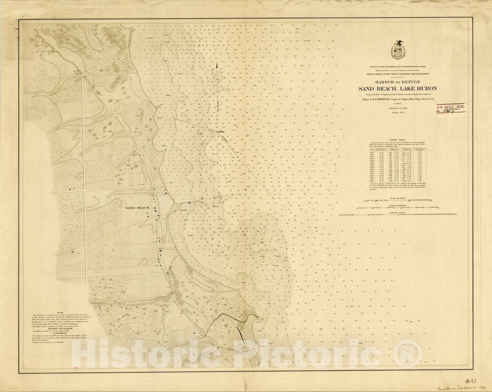 Map : Lake Survey Charts, Harbor of refuge, Sand Beach, Lake Huron, Antique Vintage Reproduction