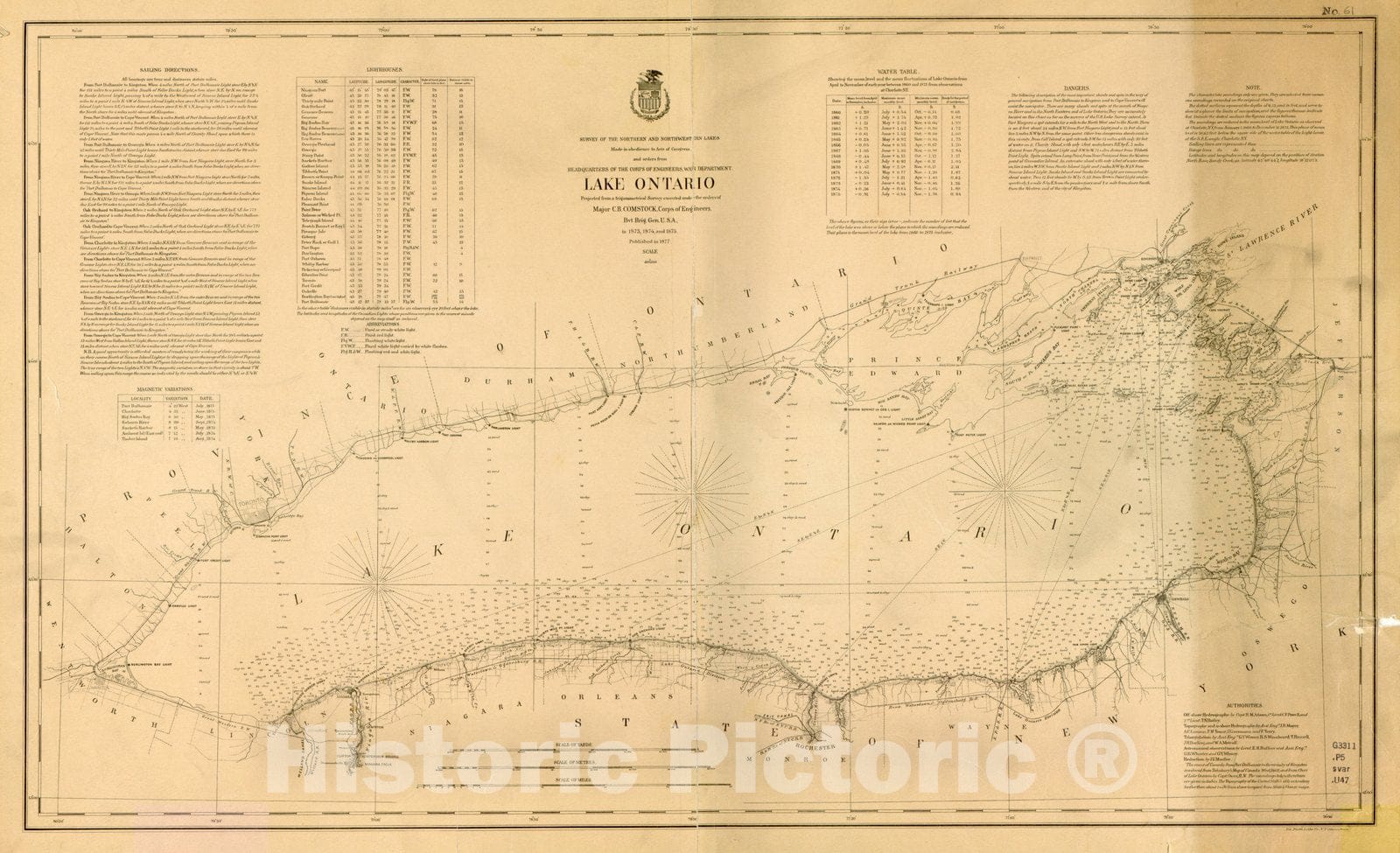 Map : Lake Survey Charts, Lake Ontario, Antique Vintage Reproduction