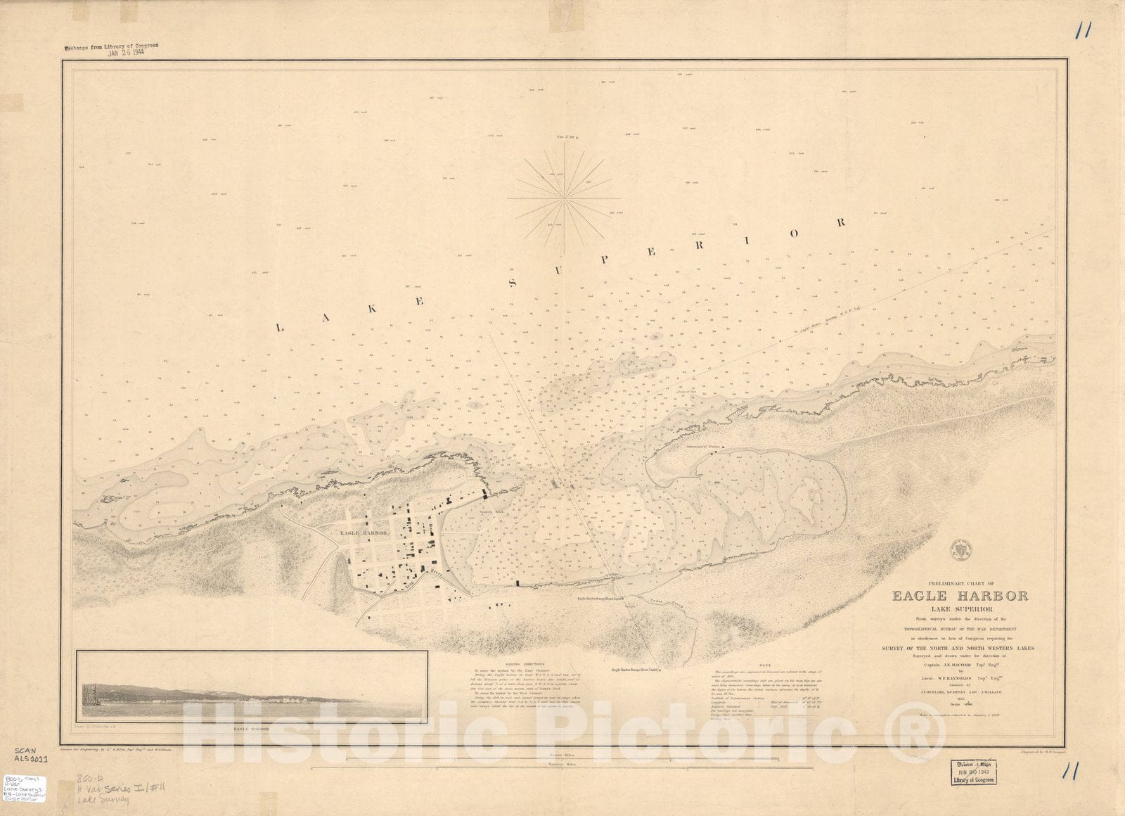 Map : Lake Survey Charts, Preliminary chart of Eagle Harbor, Lake Superior, Antique Vintage Reproduction