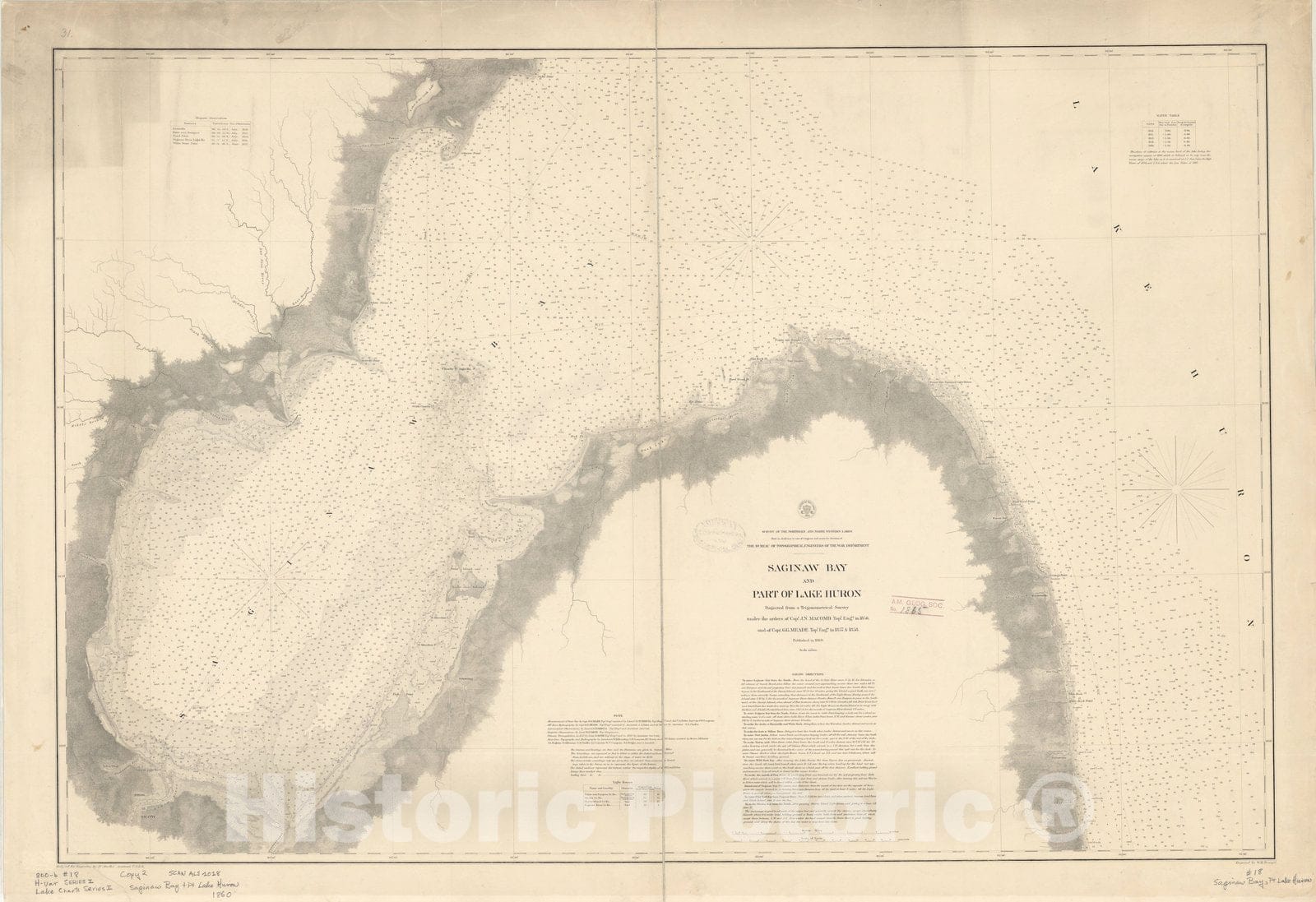 Map : Lake Survey Charts, Saginaw Bay and part of Lake Huron, Antique Vintage Reproduction
