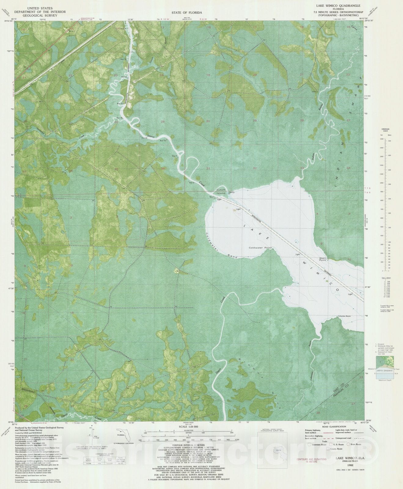 Historic Nautical Map - Lake Wimico, FL, 1982 NOAA Topographic Bathymetric Historic Nautical Map - Vintage Wall Art