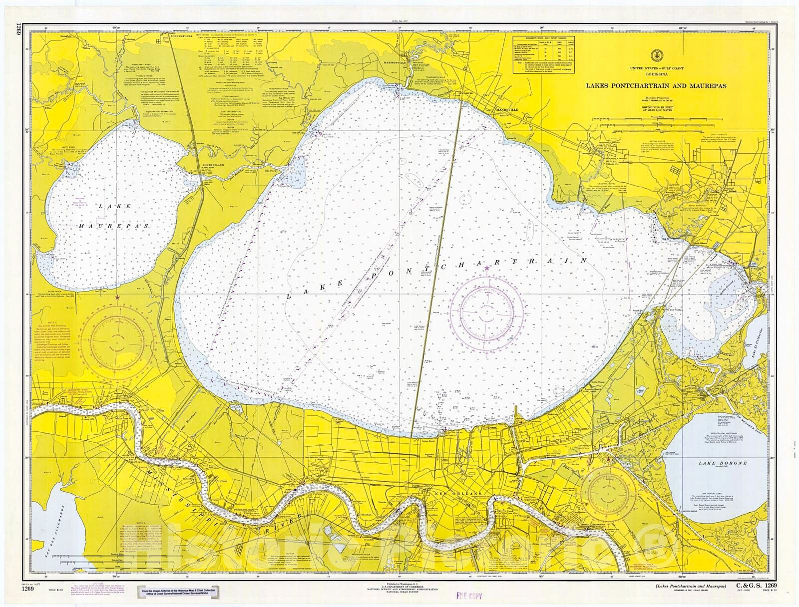Historic Nautical Map - Lakes Pontchartrain And Maurepas, 1971 NOAA Chart - Louisiana (LA) - Vintage Wall Art