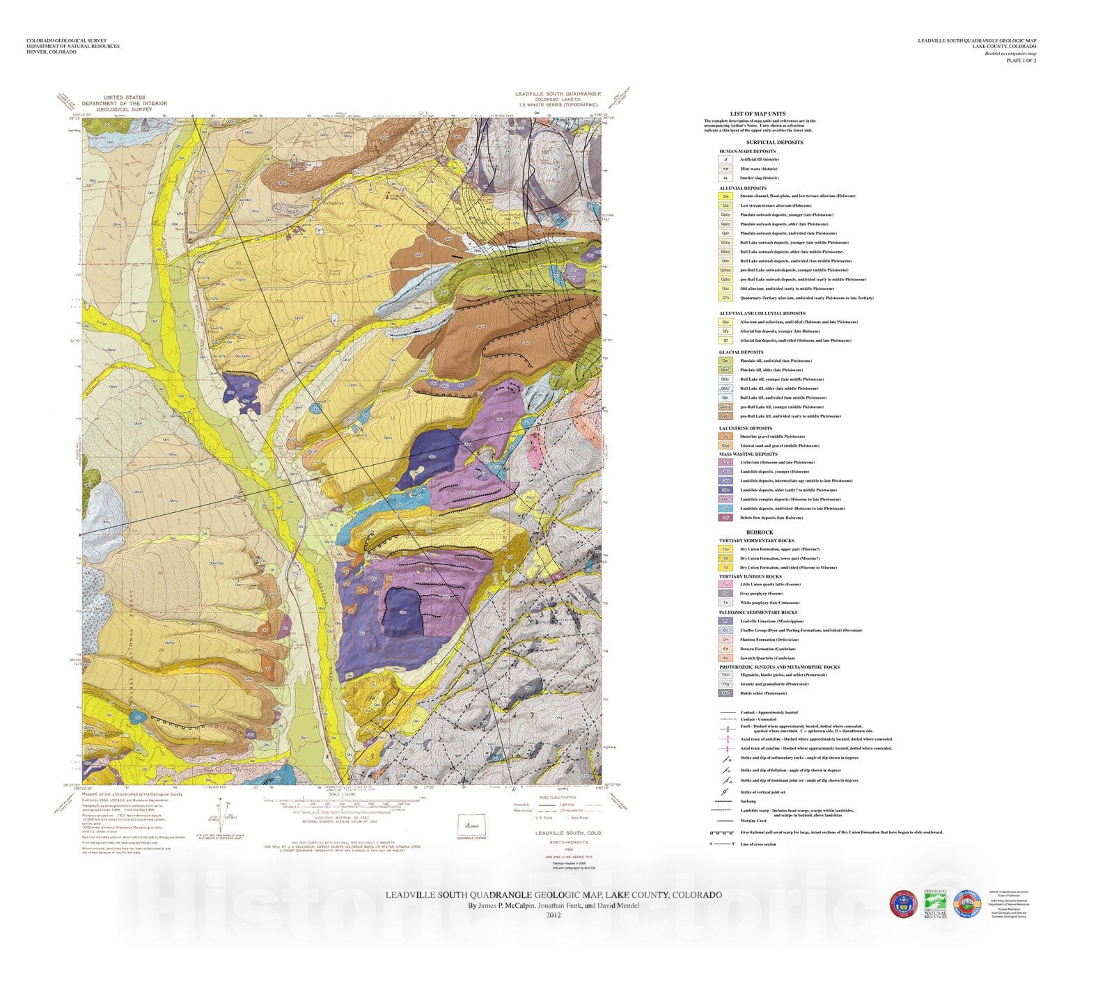 Map : Leadville South Quadrangle Geologic Map, Lake County, Colorado, 2012 Cartography Wall Art :
