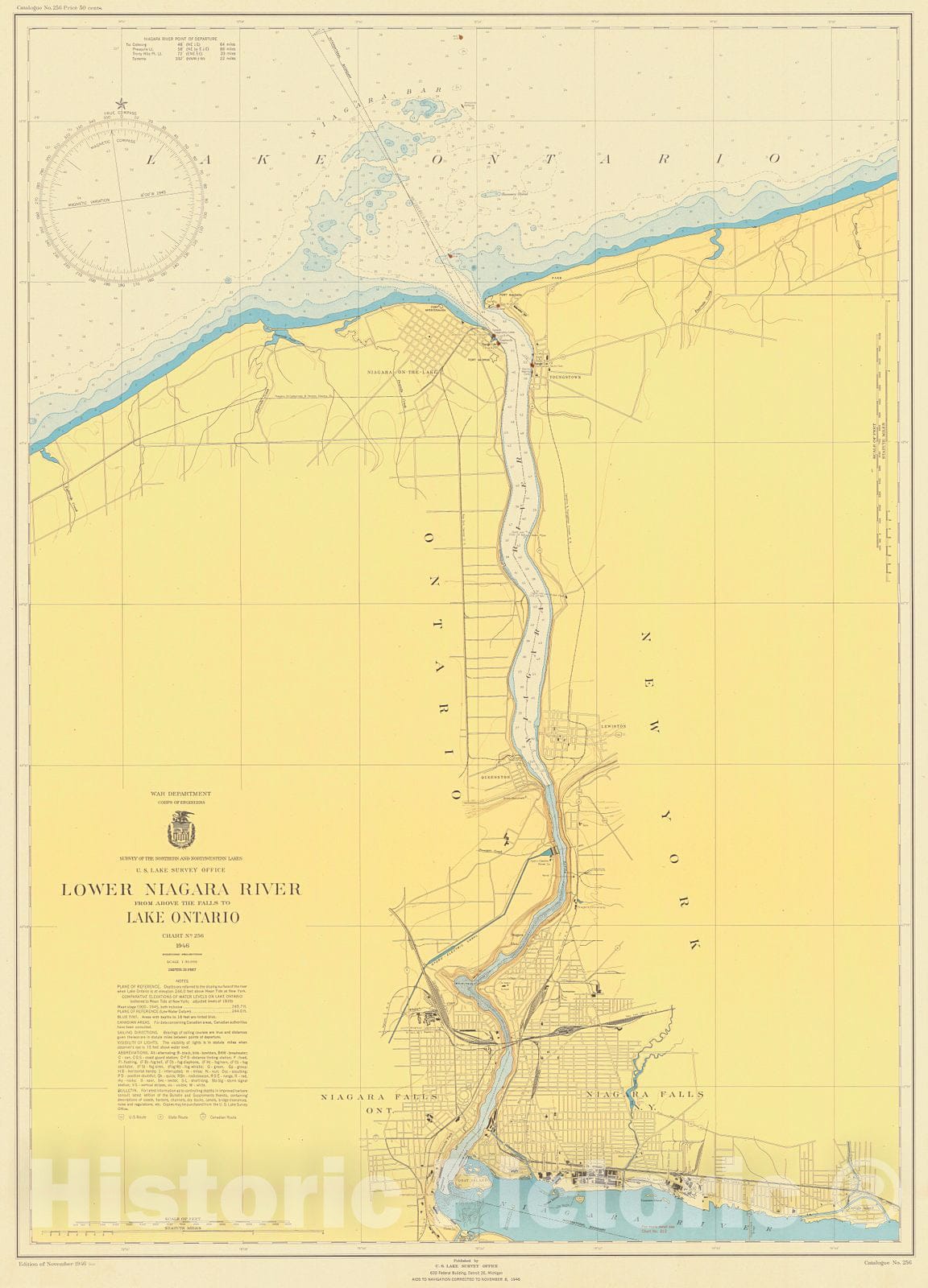 Historic Nautical Map - Lower Niagara River From Above The Falls To Lake Ontario, 1946 NOAA Chart - Vintage Wall Art