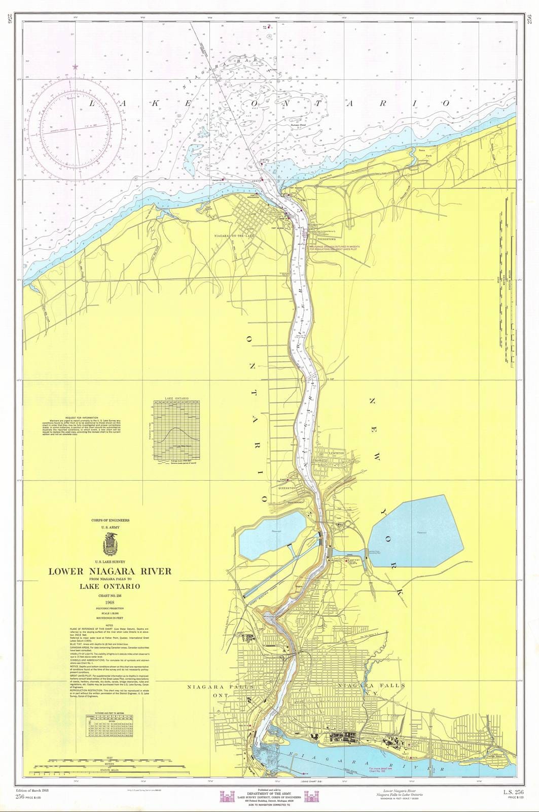 Historic Nautical Map - Lower Niagara River Niagara Falls To Lake Ontario, 1968 NOAA Chart - Vintage Wall Art
