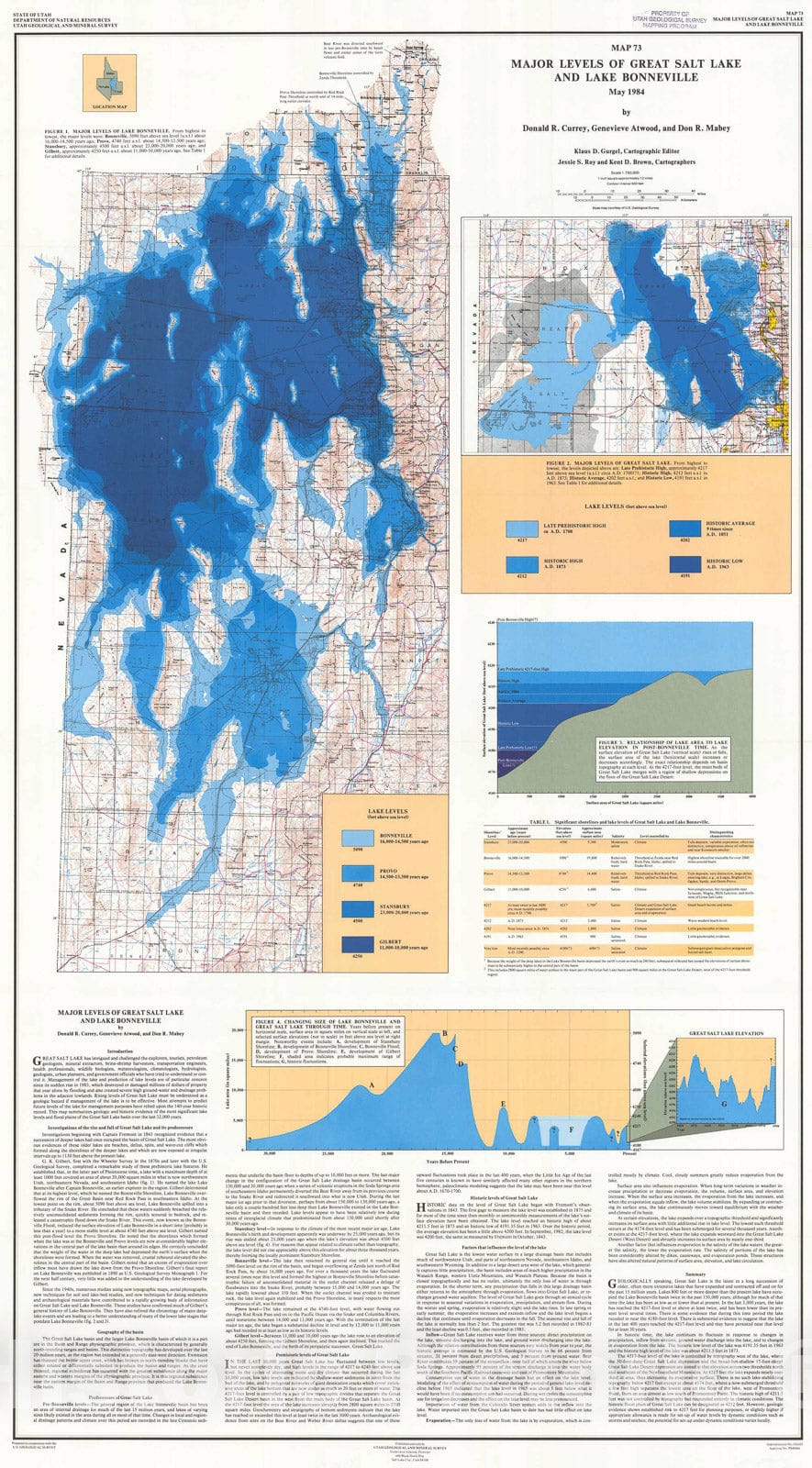 Map : Major levels of Great Salt Lake and Lake Bonneville, 1984 Cartography Wall Art :