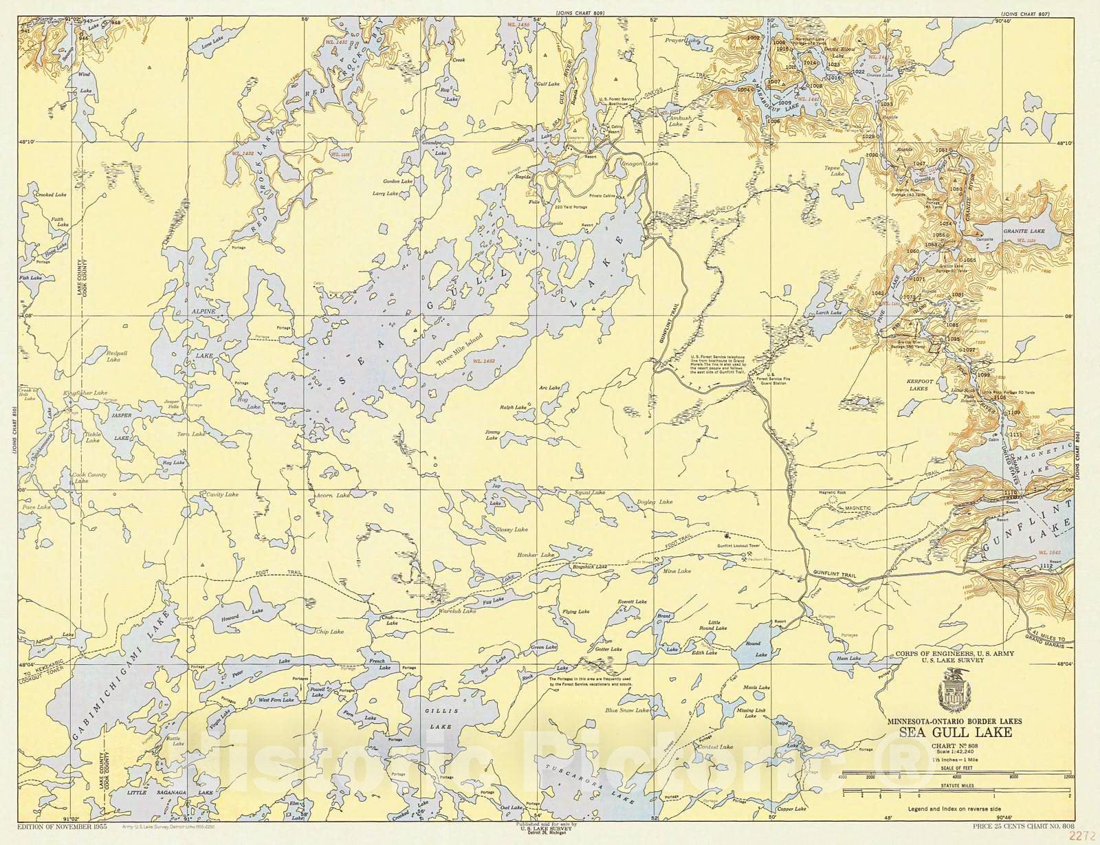 Historic Nautical Map - Minnesota - Ontario Border Lakes, Sea Gull Lake, 1955 NOAA Chart - Minnesota (MN) - Vintage Wall Art