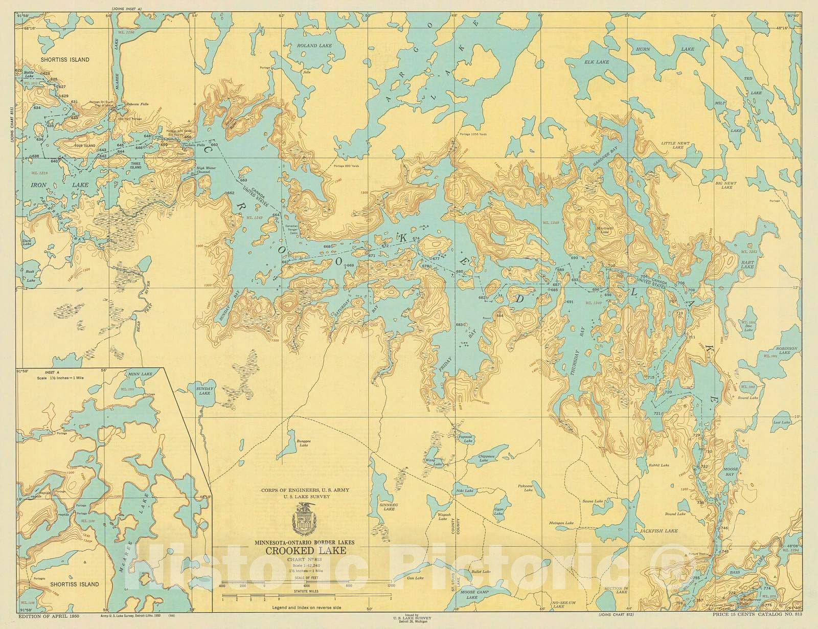 • .Historic Nautical Map - Minnesota-Ontario Border Lakes Crooked Lake, 1950 NOAA Chart - Minnesota (MN) - Vintage Wall Art