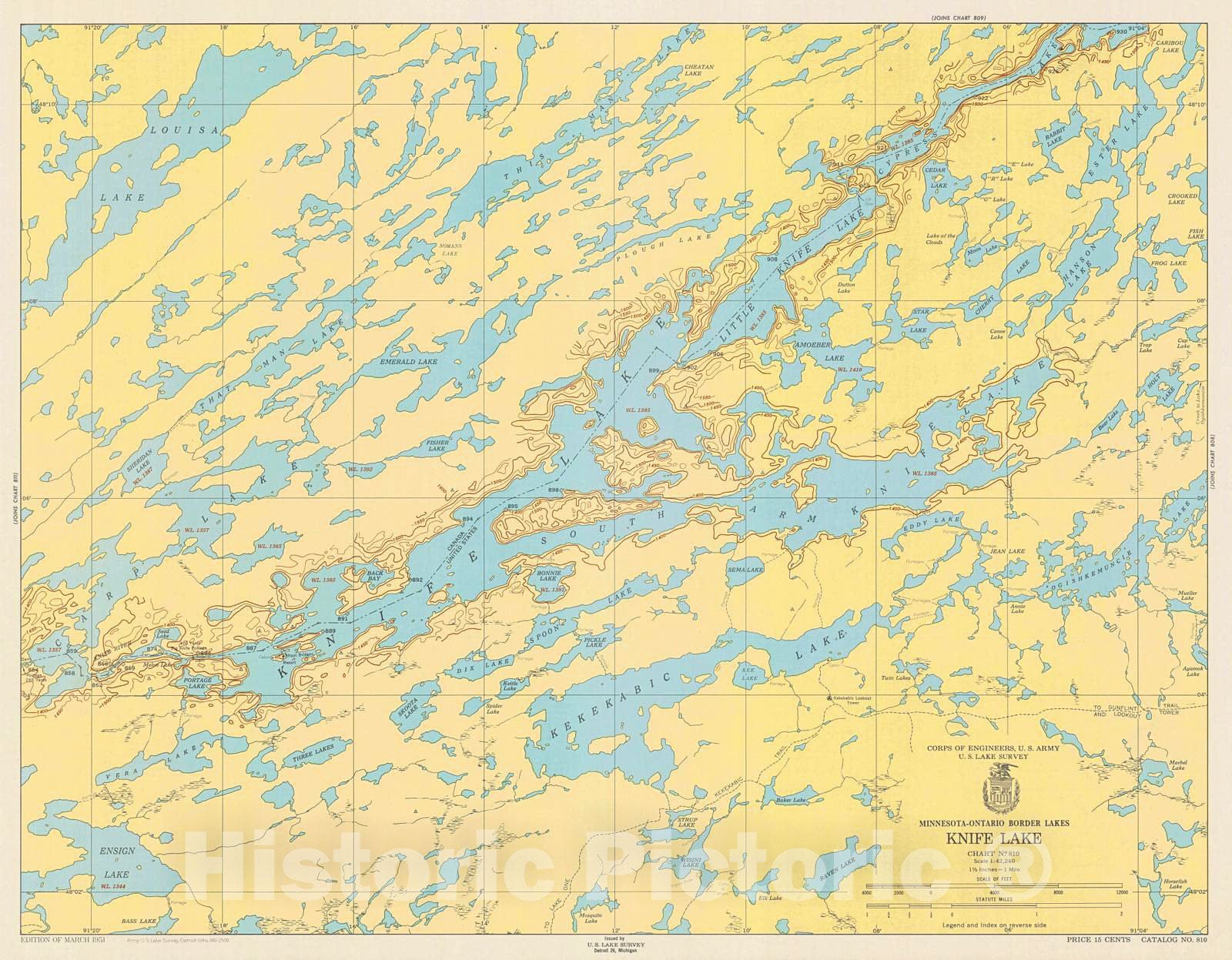 • .Historic Nautical Map - Minnesota-Ontario Border Lakes Knife Lake, 1951 NOAA Chart - Minnesota (MN) - Vintage Wall Art