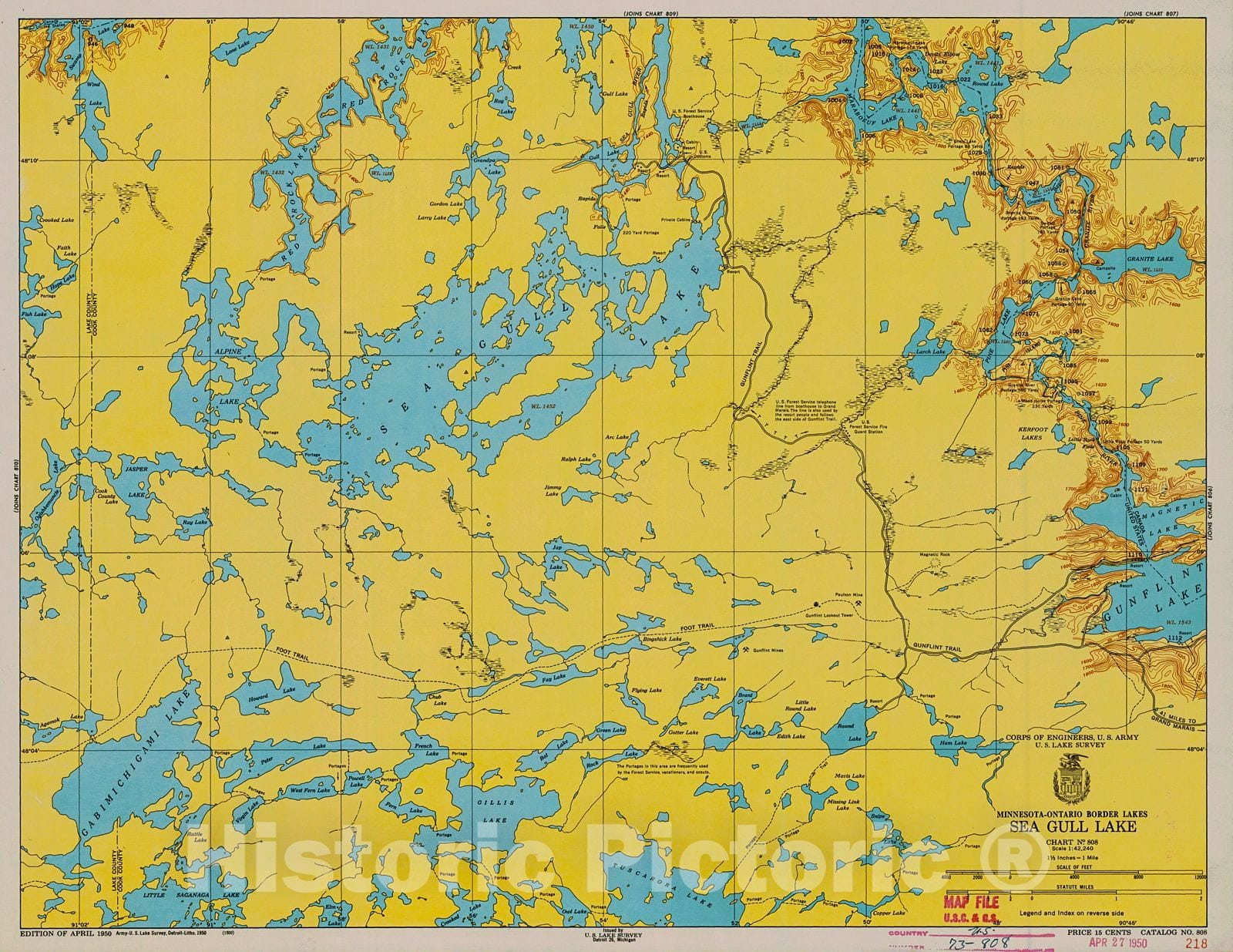 Historic Nautical Map - Minnesota-Ontario Border Lakes Sea Gull Lake, 1950 NOAA Chart - Vintage Wall Art