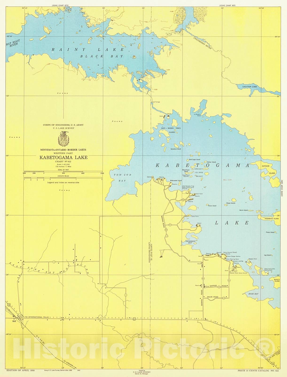 Historic Nautical Map - Minnesota-Ontario Border Lakes Western Part Kabetogama Lake, 1950 NOAA Chart - Minnesota (MN) - Vintage Wall Art