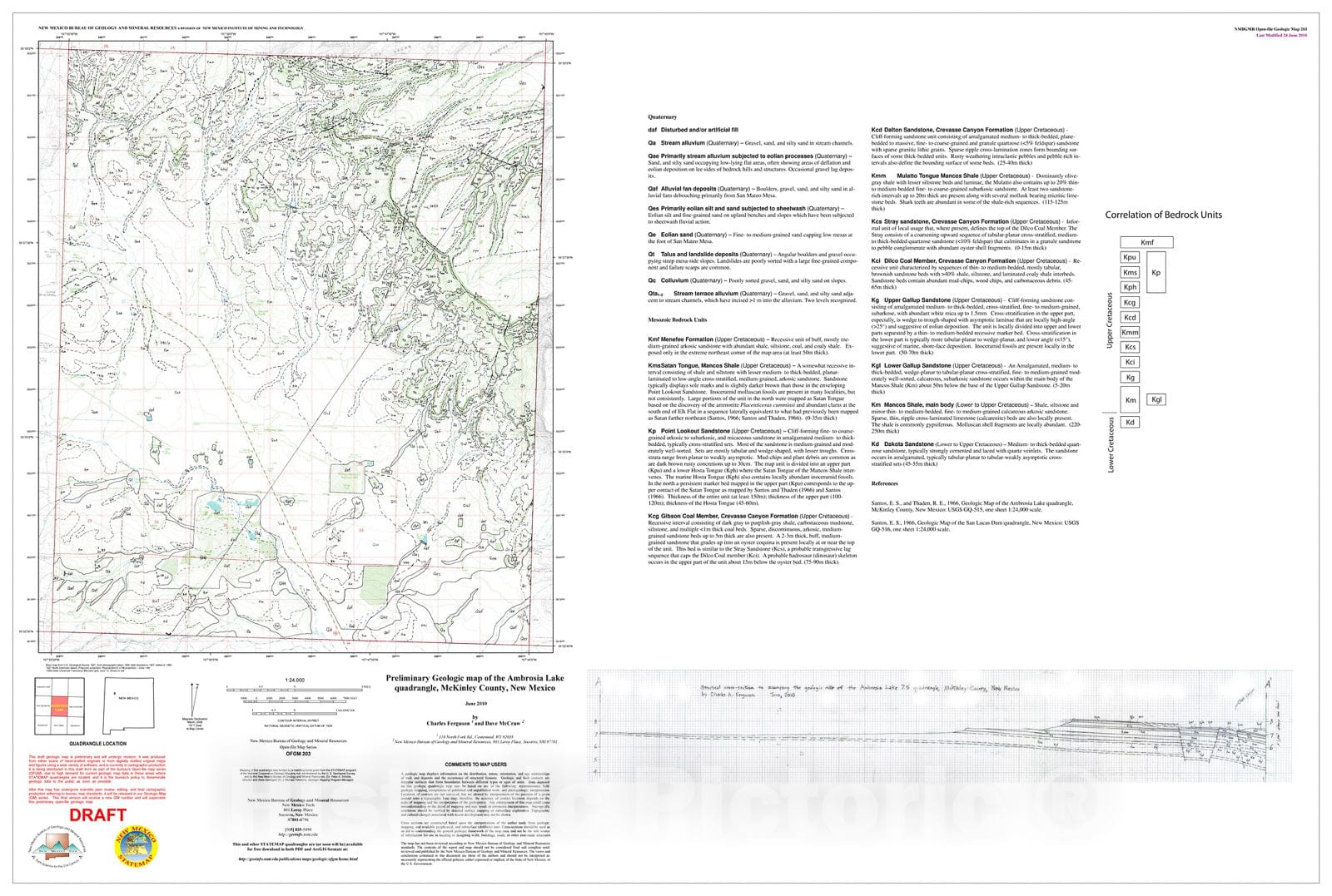 Map : Preliminary geologic map of the Ambrosia Lake quadrangle, McKinley County, New Mexico, 2010 Cartography Wall Art :