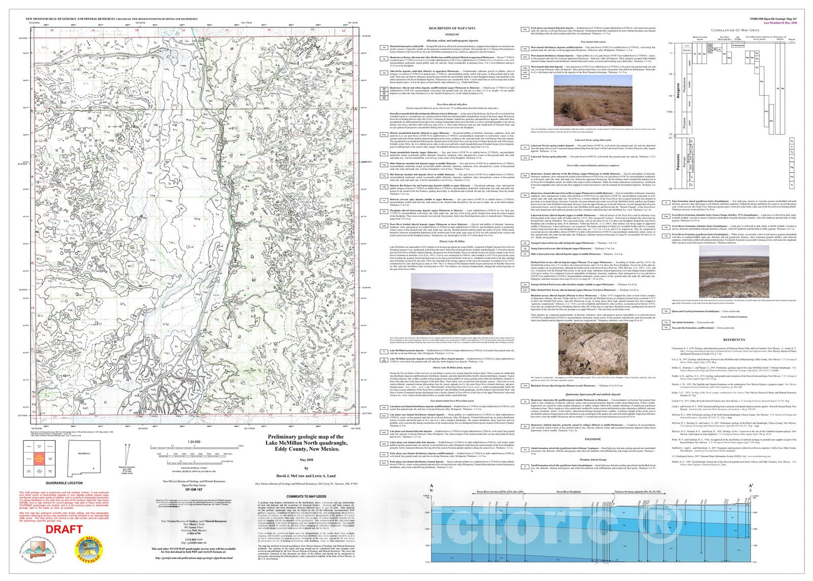 Map : Preliminary geologic map of the Lake McMillan North 7.5-minute quadrangle map, Eddy County, New Mexico, 2008 Cartography Wall Art :