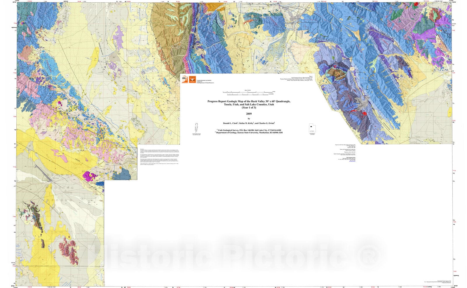 Map : Progress report geologic map of the Rush Valley 30' x 60' quadrangle, Tooele, Utah, and Salt Lake Counties, Utah (year one of 3), 2009 Cartography Wall Art :