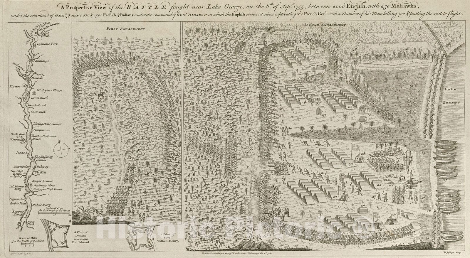 Historical Map, A Prospective View of The Battle Fought Near Lake George, on The 8th of Sepr. 1755, Between 2000 English, with 250 Mohawks, Vintage Wall Art