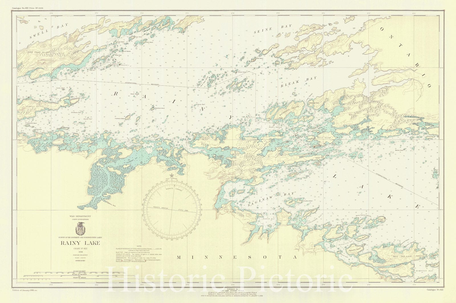 Historic Nautical Map - Rainy Lake, 1938 NOAA Chart - Minnesota (MN) - Vintage Wall Art
