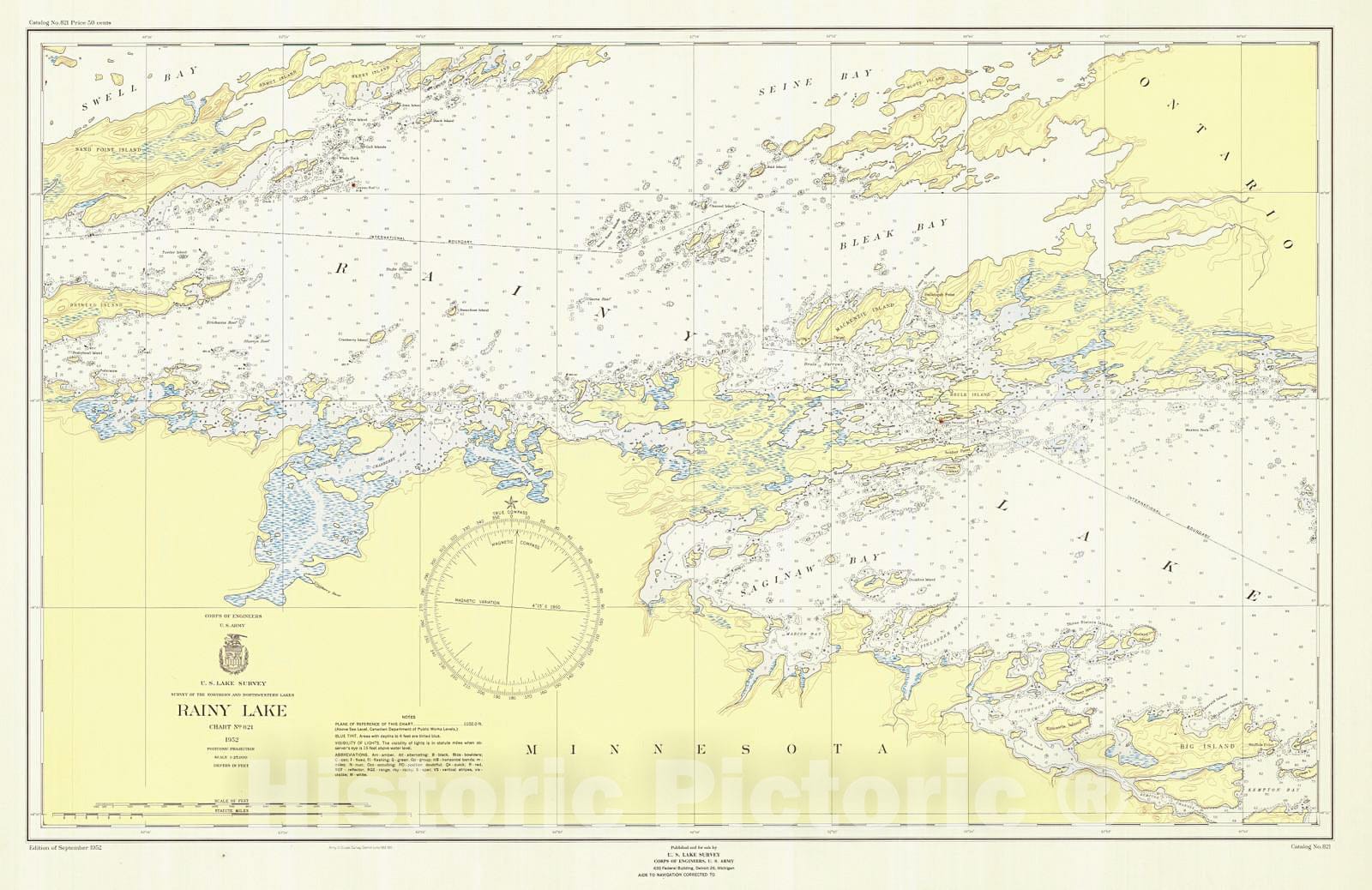 Historic Nautical Map - Rainy Lake, 1952 NOAA Chart - Minnesota (MN) - Vintage Wall Art, v2
