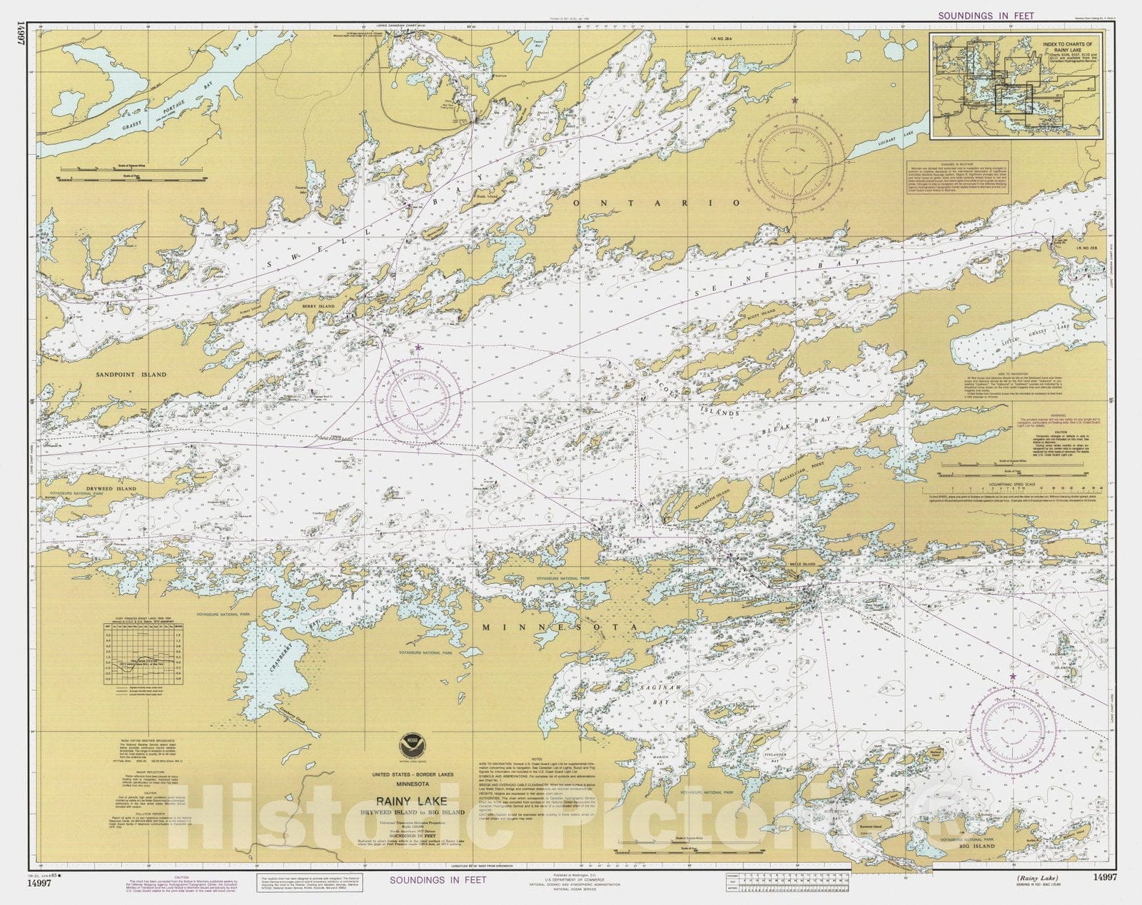 Historic Nautical Map - Rainy Lake, MN, 1985 NOAA Chart - Vintage Wall Art