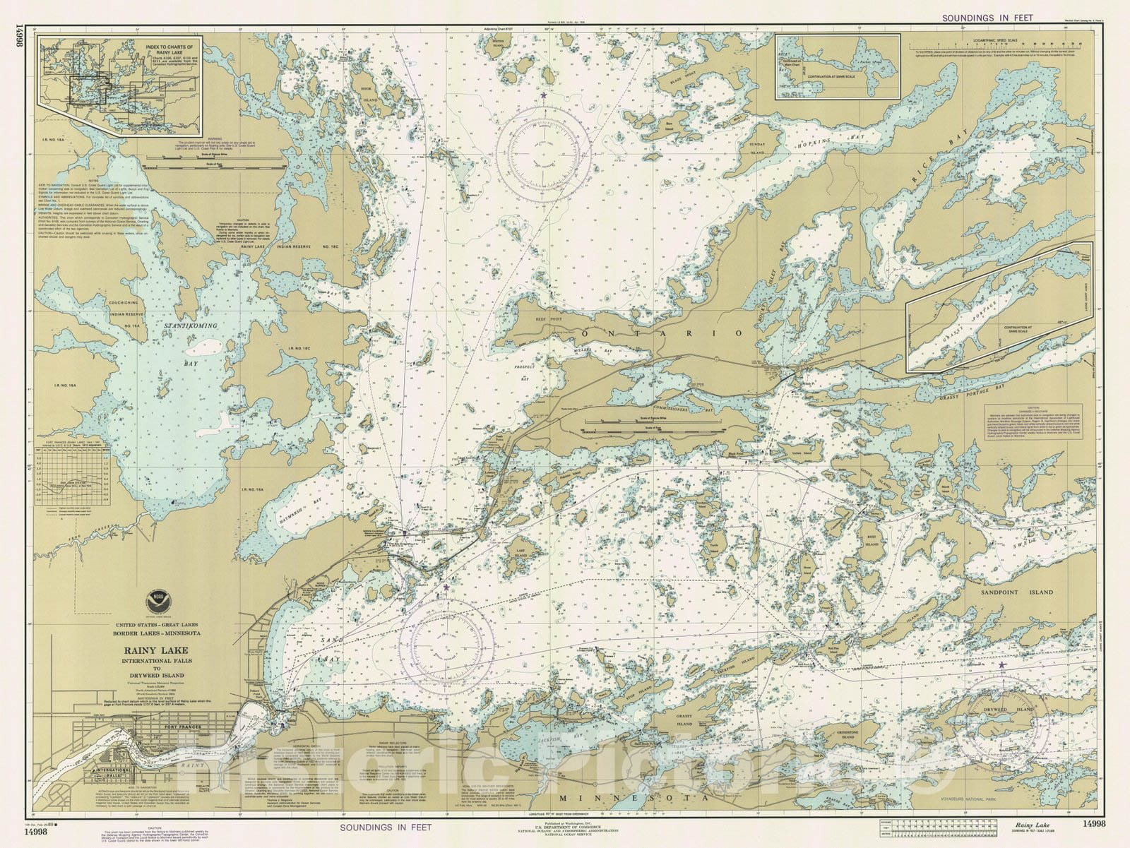 Historic Nautical Map - Rainy Lake, MN, 1989 NOAA Chart - Vintage Wall Art