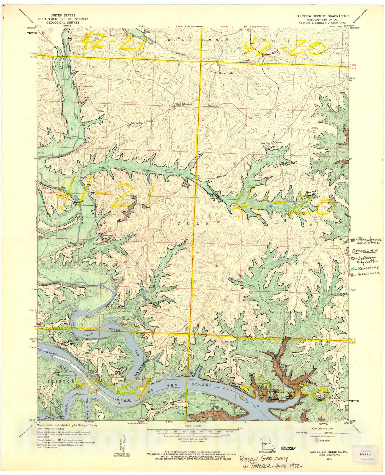 Map : Reconnaissance geologic map of the Lakeview Heights seven 1/2' quadrangle, Missouri, 19seven5 Cartography Wall Art :
