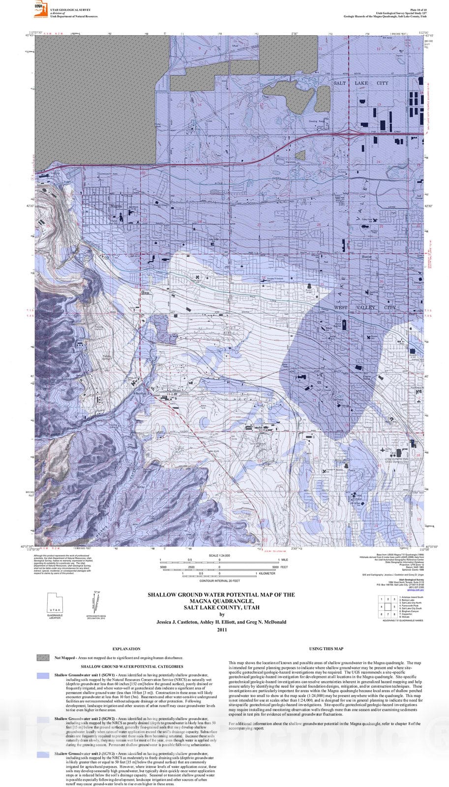 Map : Shallow groundwater potential map of the Magna quadrangle, Salt Lake County, Utah, 2011 Cartography Wall Art :