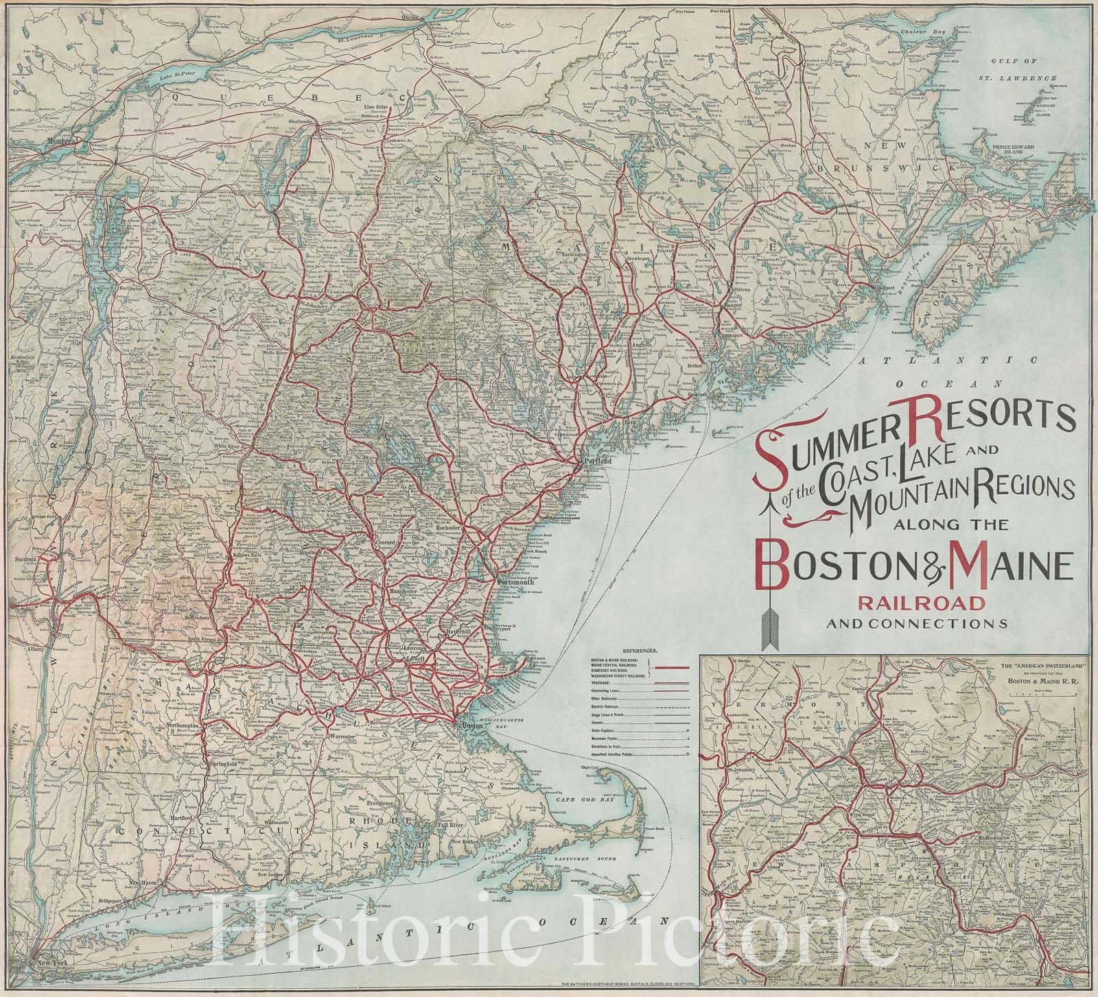 Historic Map : Summer Resorts of the Coast, Lake and Mountain Regions along the Boston and Maine Railroad and Connections, Vintage Wall Art