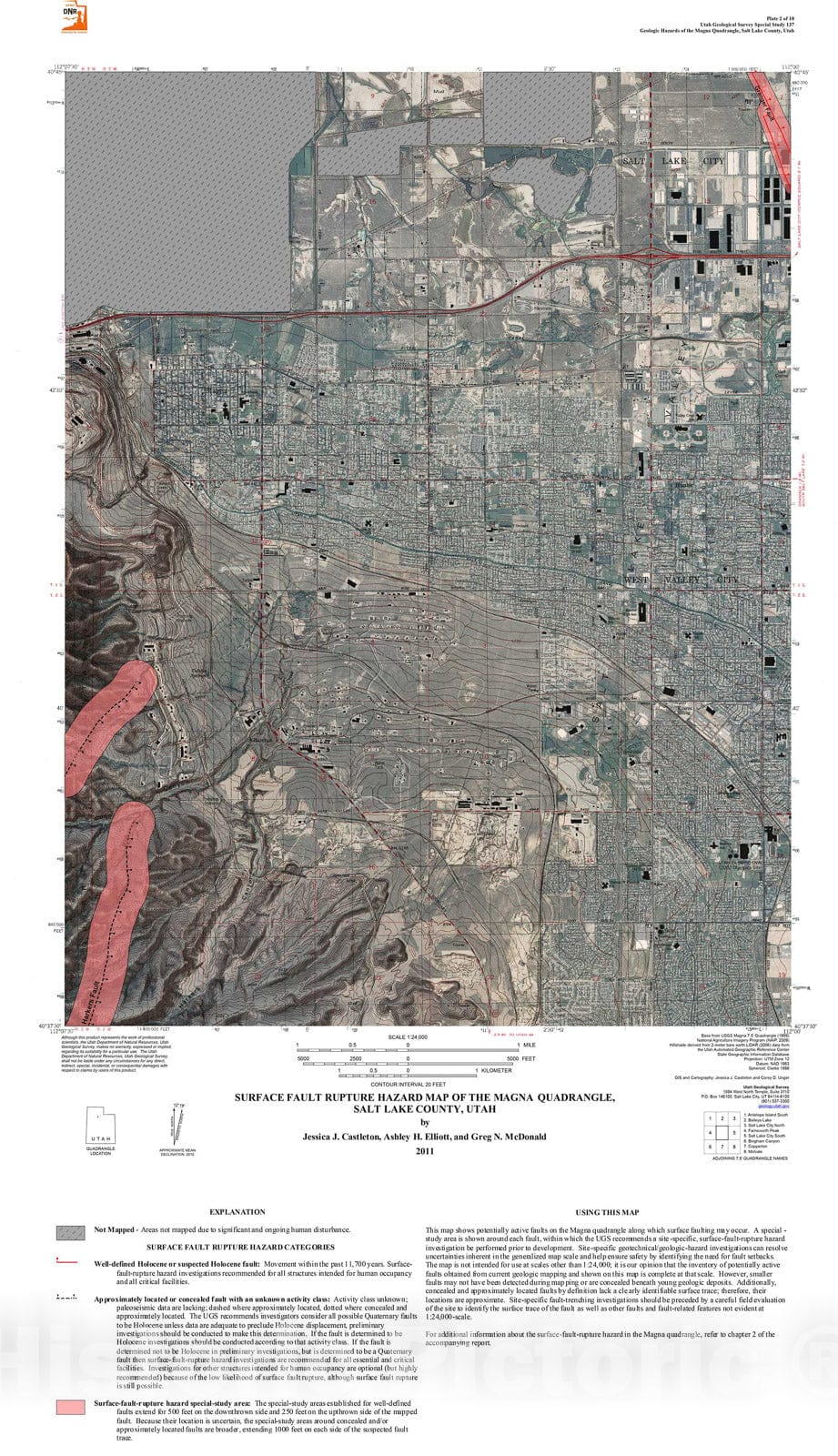 • .Map : Surface fault rupture hazard map of the Magna quadrangle, Salt Lake County, Utah, 2011 Cartography Wall Art :