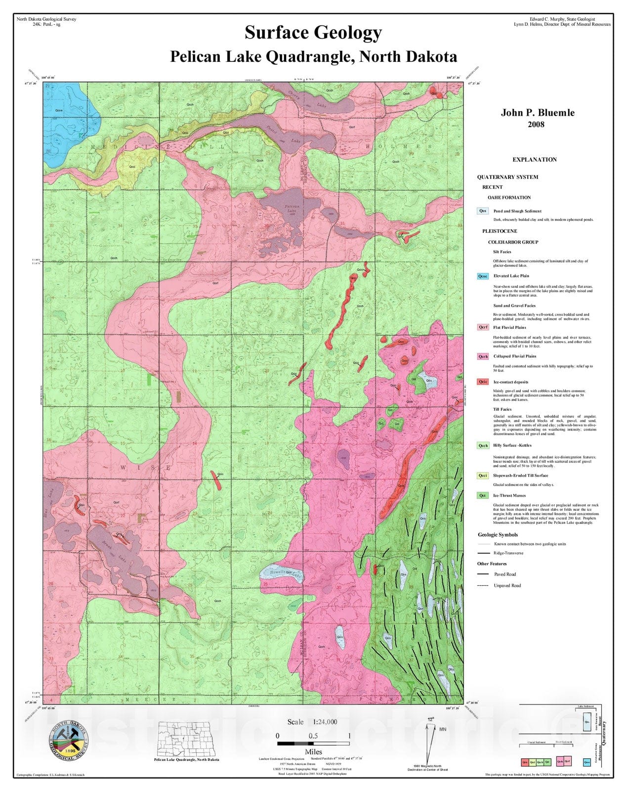 Map : Surface geology map of Pelican Lake Quad, ND, 2008 Cartography Wall Art :