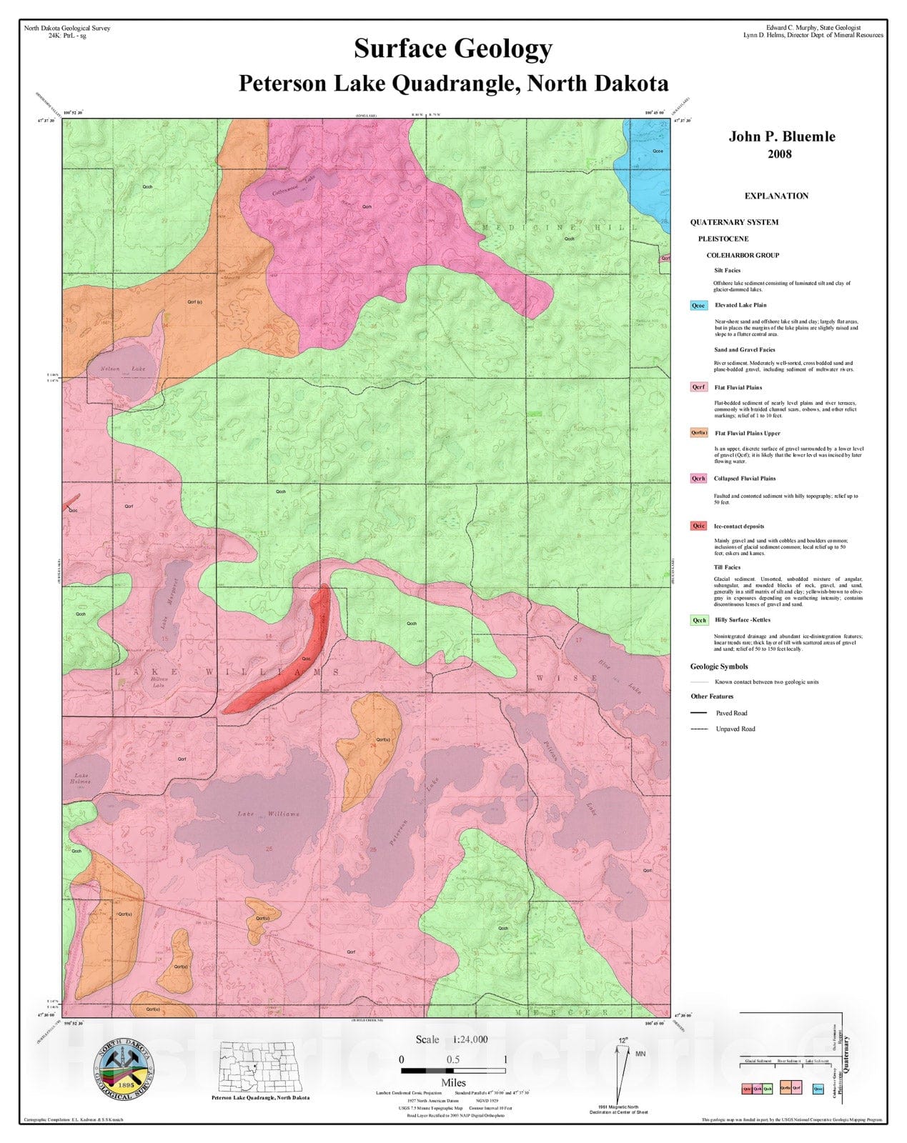 Map : Surface geology map of Peterson Lake Quad, ND, 2008 Cartography Wall Art :
