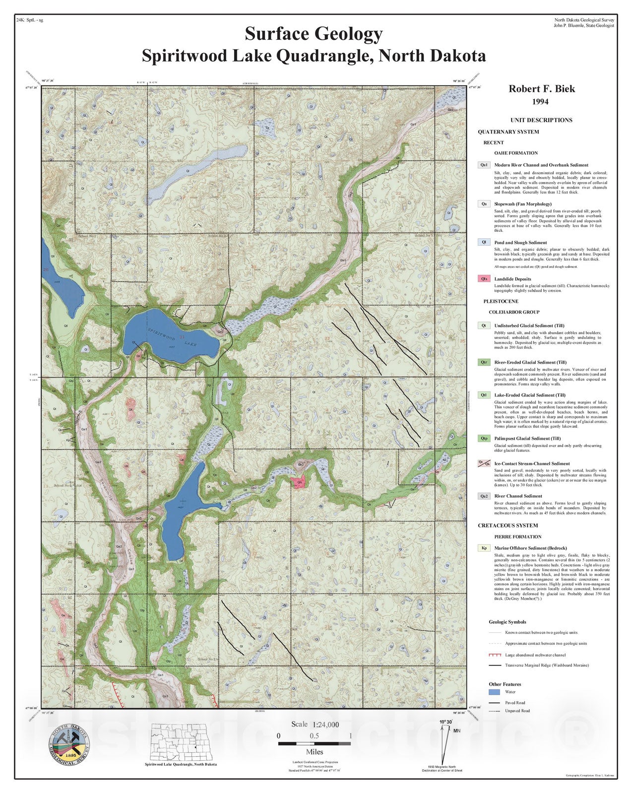 Map : Surface geology - Spiritwood Lake quadrangle, North Dakota, 1994 Cartography Wall Art :