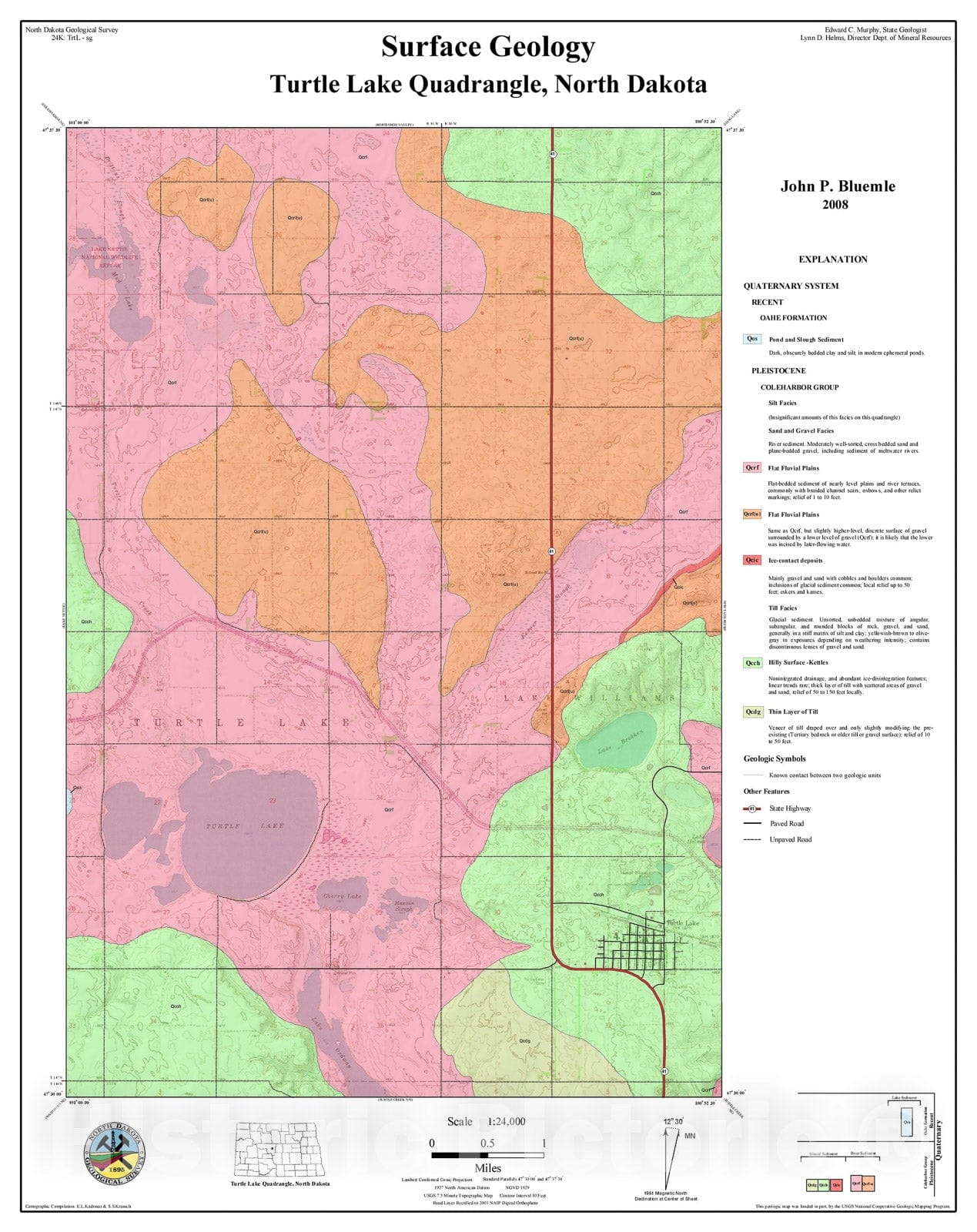 Map : Surface geology map of Turtle Lake Quad, ND, 2008 Cartography Wall Art :