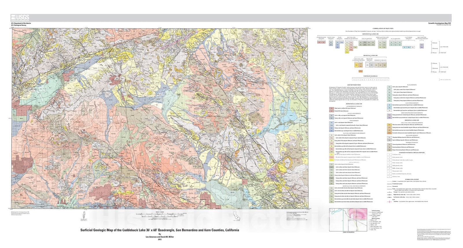Map : Surficial geologic map of the Cuddeback Lake 30' x 60' quadrangle, San Bernardino and Kern Counties, California, 2012 Cartography Wall Art :