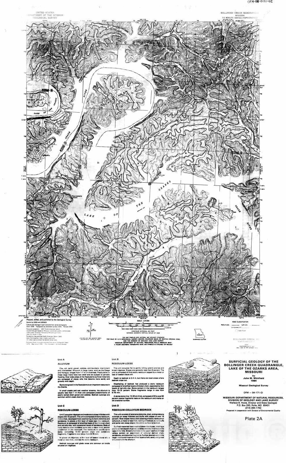 Map : Surficial geology of the Bollinger Creek quadrangle, Lake of the Ozarks area, Missouri [7.5'] [Plate 2A}, 1984 Cartography Wall Art :