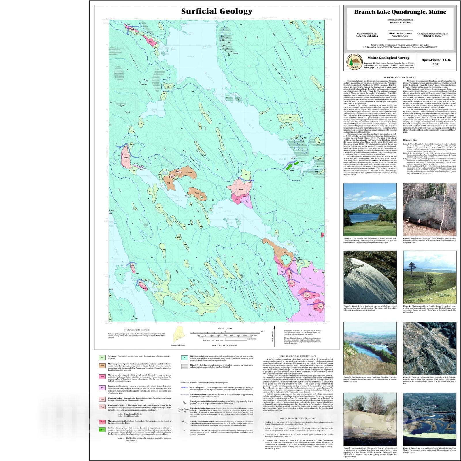 Map : Surficial geology of the Branch Lake quadrangle, Maine, 2011 Cartography Wall Art :