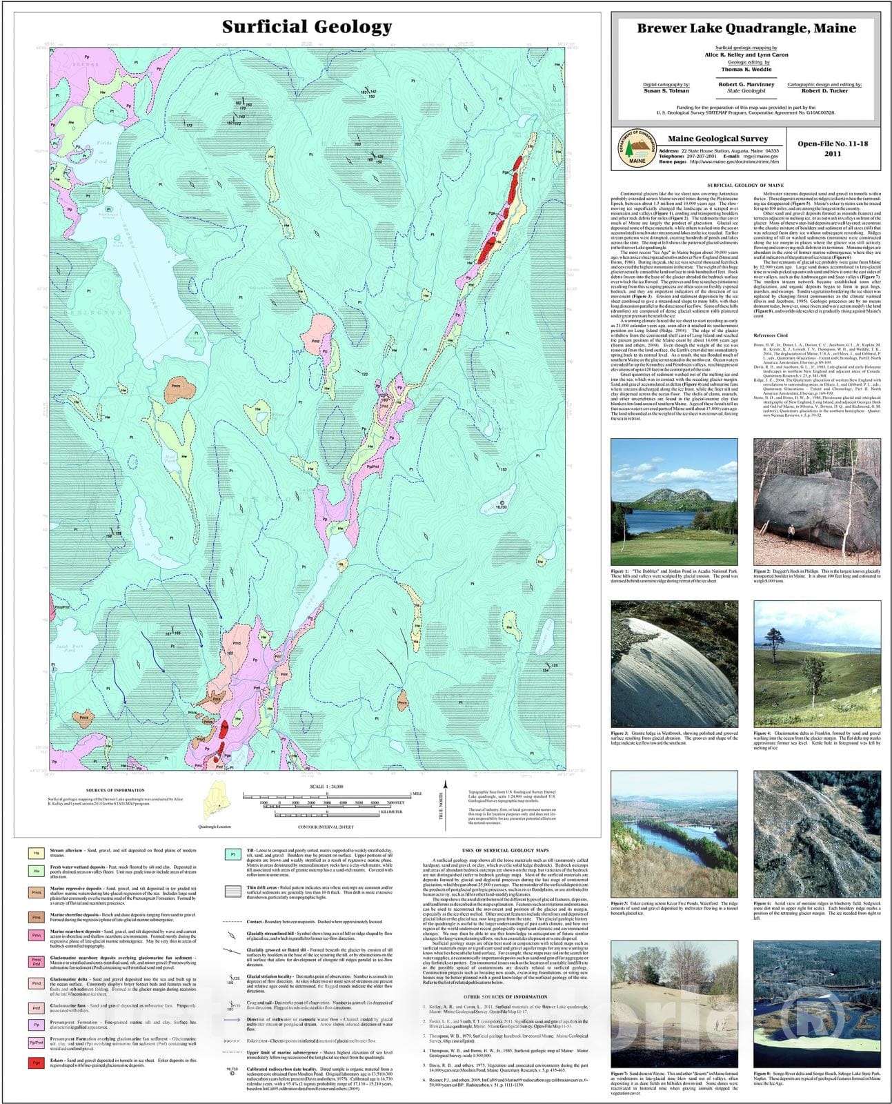 • .Map : Surficial geology of the Brewer Lake quadrangle, Maine, 2011 Cartography Wall Art :