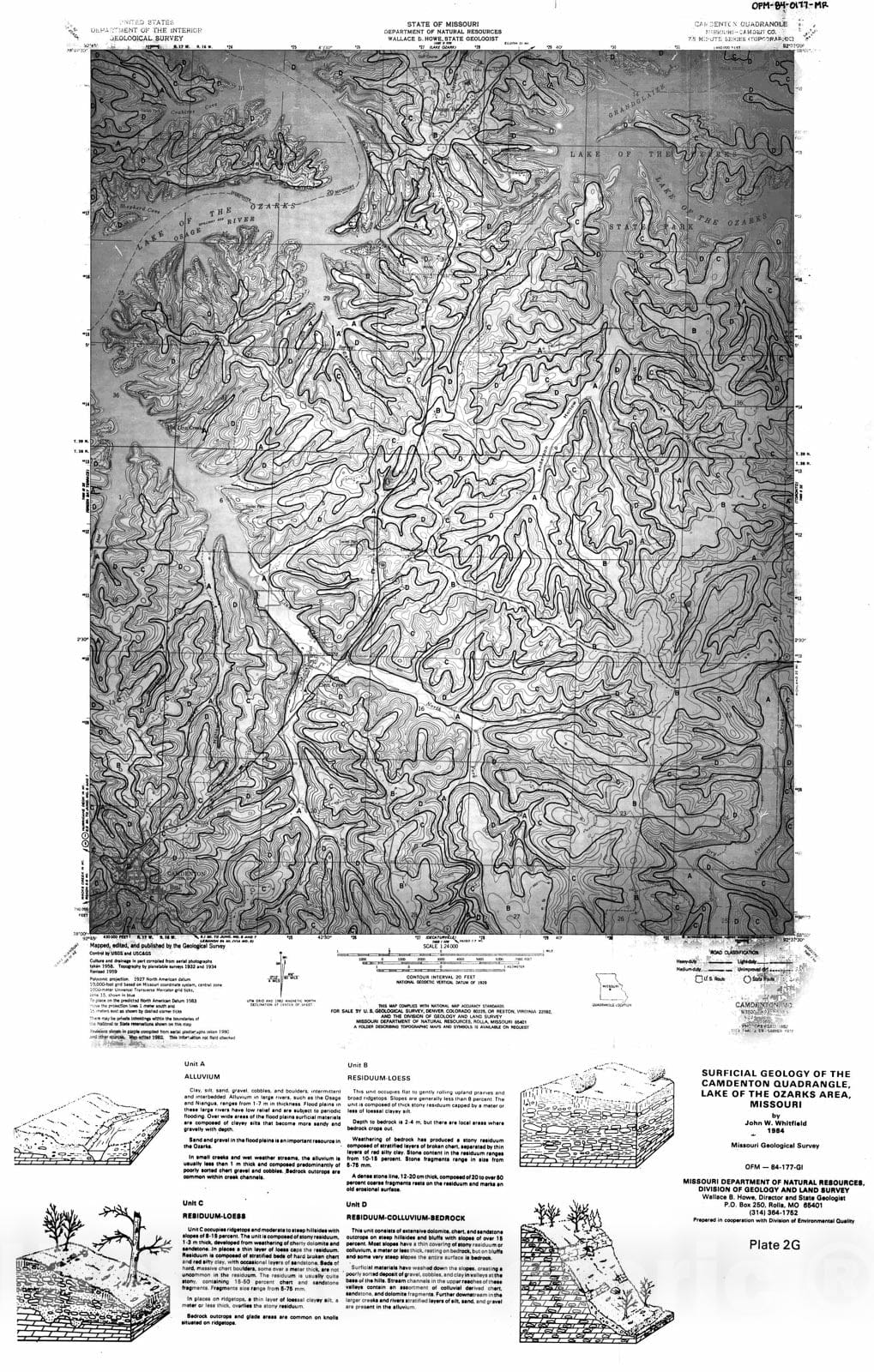 Map : Surficial geology of the Camdenton quadrangle, Lake of the Ozarks area, Missouri [Plate 2G], 1984 Cartography Wall Art :