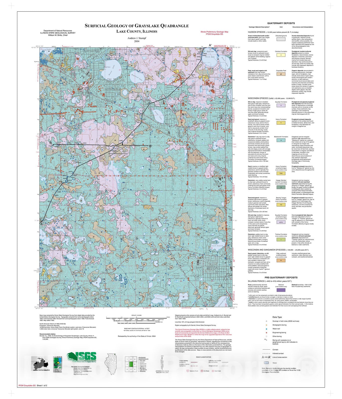 • .Map : Surficial geology of Grayslake Quadrangle, 2004 Cartography Wall Art :