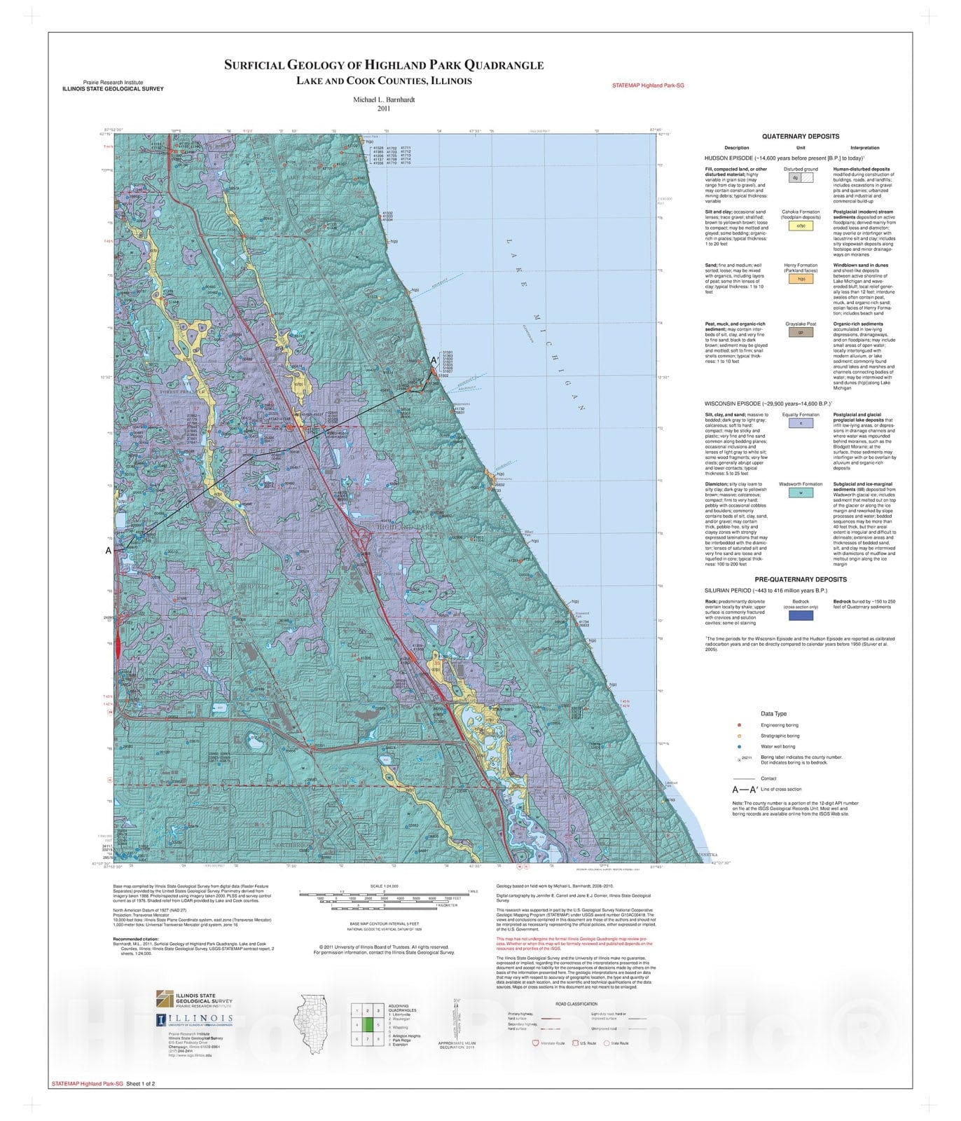 Map : Surficial geology of Highland Park quadrangle, Lake and Cook counties, Illinois, 2011 Cartography Wall Art :