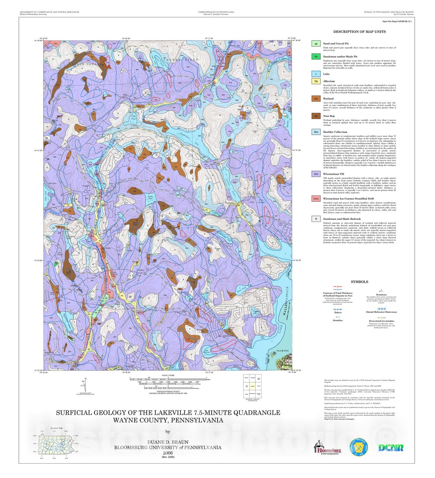 Map : Surficial geology of the Lakeville 7.5-minute quadrangle, Wayne County, Pennsylvania [Revision 1], 2006 Cartography Wall Art :