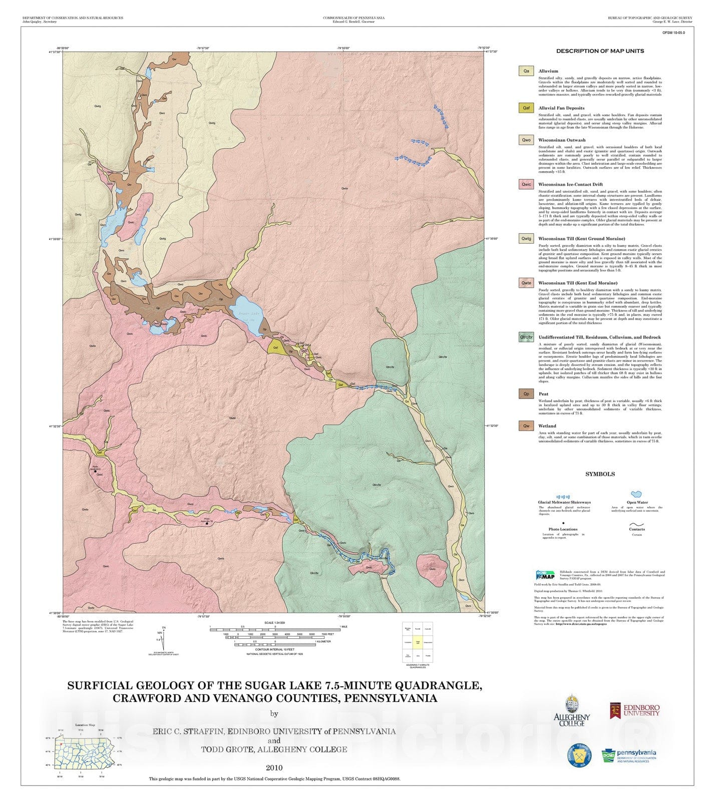Map : Surficial geology of the Sugar Lake 7.5-minute quadrangle, Crawford and Venango Counties, Pennsylvania, 2010 Cartography Wall Art :