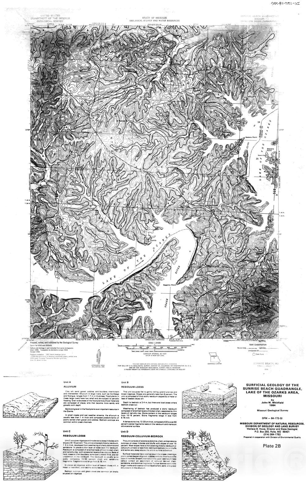 Map : Surficial geology of the Sunrise Beach quadrangle, Lake of the Ozarks area, Missouri [Plate 2B], 1984 Cartography Wall Art :