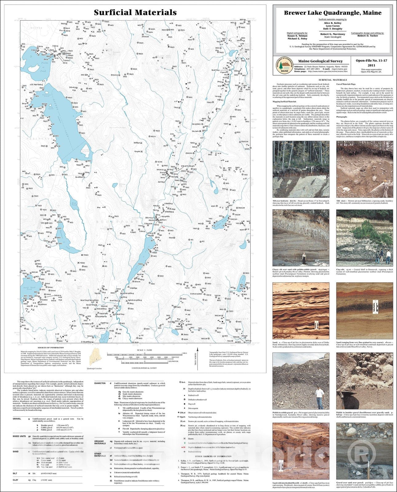 Map : Surficial materials of the Brewer Lake quadrangle, Maine, 2011 Cartography Wall Art :