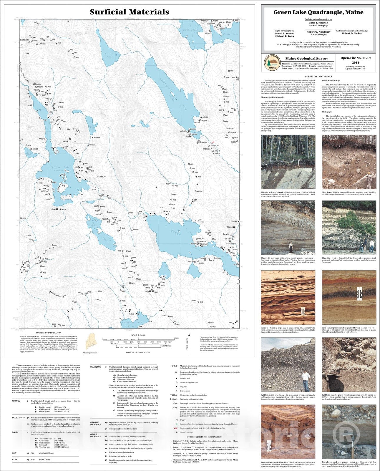 • .Map : Surficial materials of the Green Lake quadrangle, Maine, 2011 Cartography Wall Art :