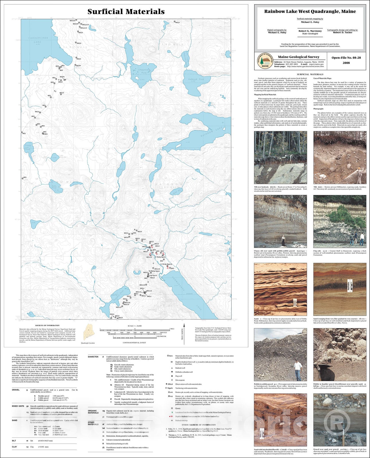 Map : Surficial materials of the Rainbow Lake West quadrangle, Maine, 2008 Cartography Wall Art :